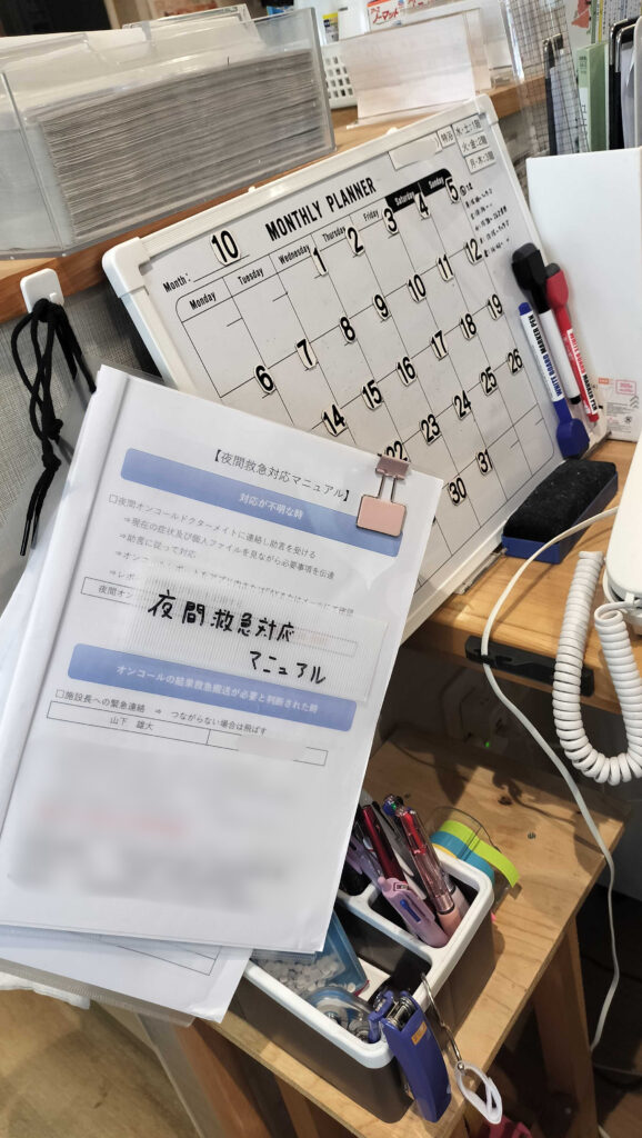 「緊急性の高いものについては、開設当初から嘱託医の先生が夜間・休日であっても対応していただいているのですが、緊急性の判断がつきづらいものについては、まずは施設長である私に連絡が行くフローとしていました」(山下氏)