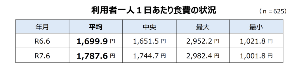 利用者一人1日あたり食費 令和6年比で87.7円増加の1787.6円に