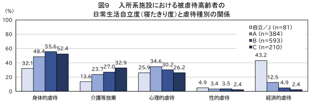 高齢者施設における虐待実態 最新データ解説(3)被虐待高齢者の状況、認知症・寝たきり度との関連