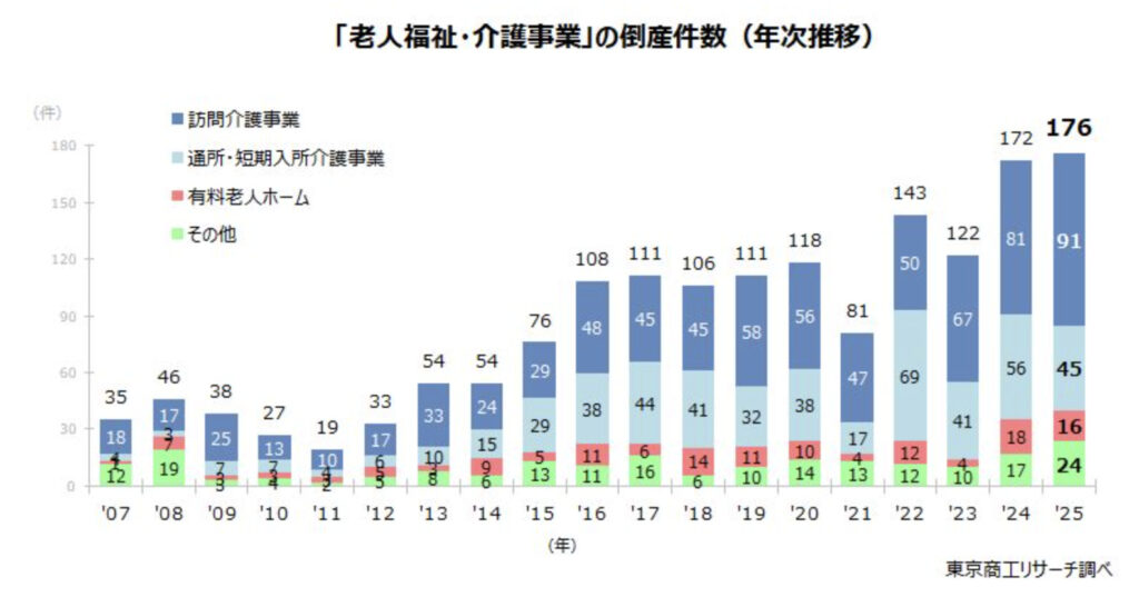 東京商工リサーチ 2025年「老人福祉・介護事業」倒産動向