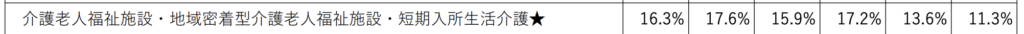 特養・地域密着型特養では、介護職員等処遇改善加算Ⅰは令和8年度特例要件を満たした場合は17.6%(満たさない場合は16.3%)、介護職員等処遇改善加算Ⅱは同様に17.2%(満たさない場合は15.9%)となります。介護職員等処遇改善加算を除く加減算後の総報酬単位数に加算率が算定されます。