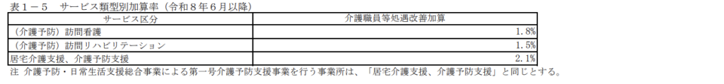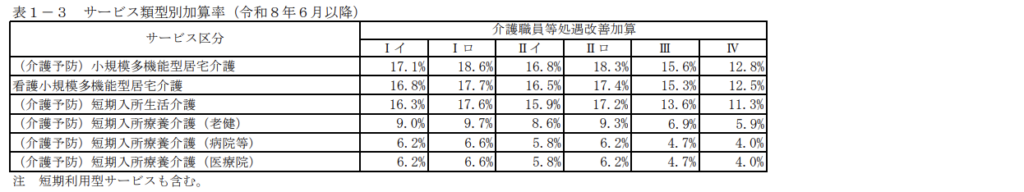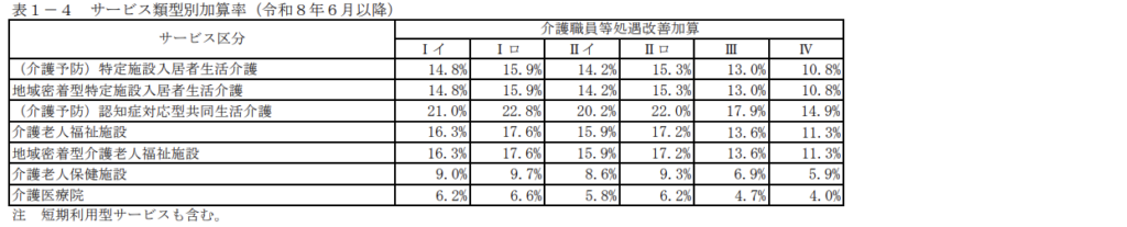 2026年6月以降の加算区分及びサービス類型別の加算率