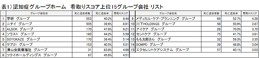 また、同社が認知症グループホームの定員総数100人以上のグループ会社を対象に、死亡退去率と実際の死亡退去者数の両面から「看取り対応力(看取りスコア)」を独自に評価したところ、最も高いスコアとなったのは学研グループとなりました。同社はこの結果について「同グループのメディカル・ケア・サービス社の実績が大きく影響」と分析しています。