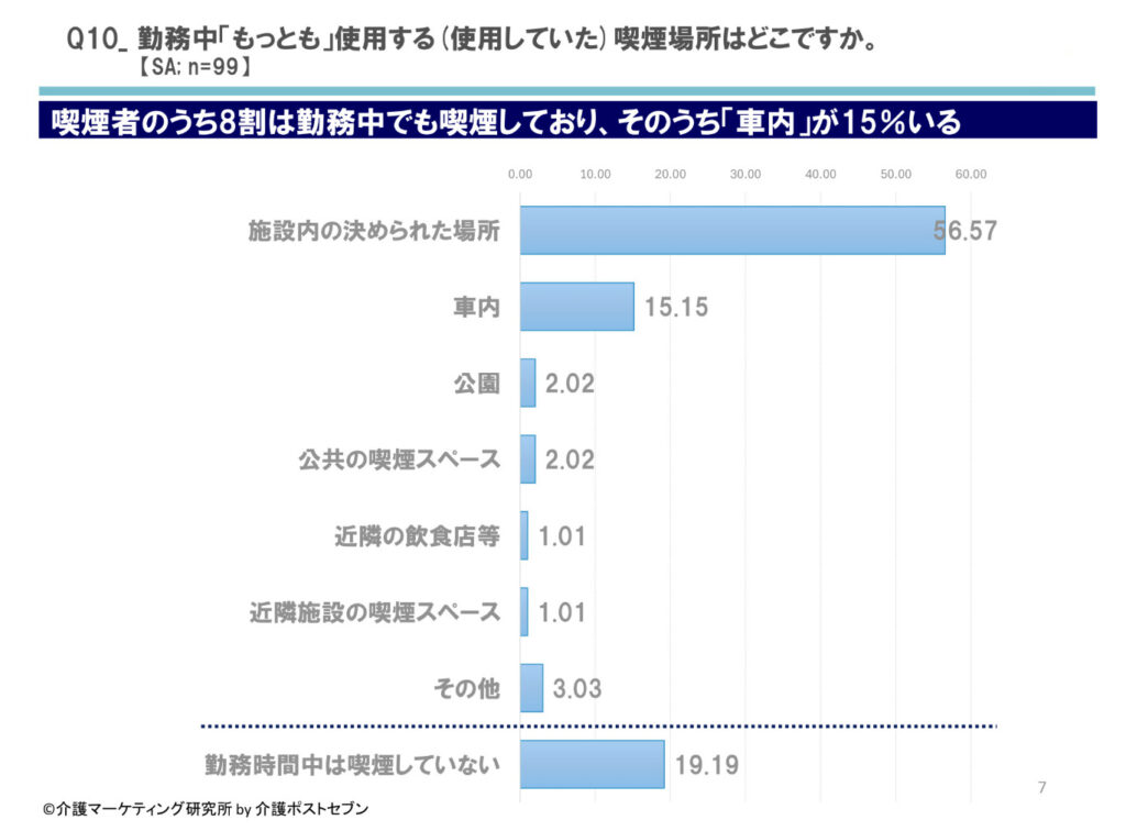 出典:介護施設の喫煙事情を徹底調査【1】|喫煙する従業員の7割に勤務先での喫煙ニーズあり。環境整備の現状は?(介護マーケティング研究所 by 介護ポストセブン)