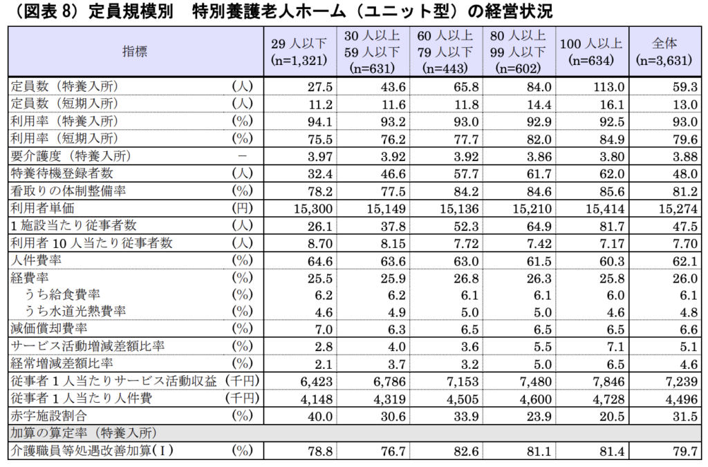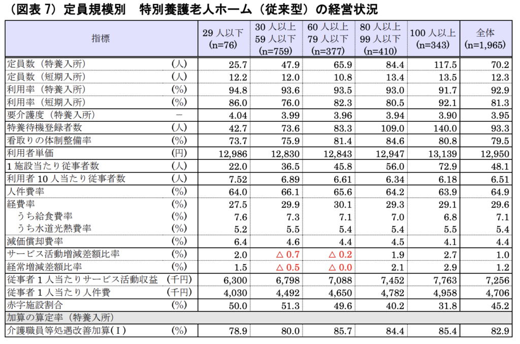 2024年度の特別養護老人ホームの経営状況について、定員規模別による集計・分析も行われています。