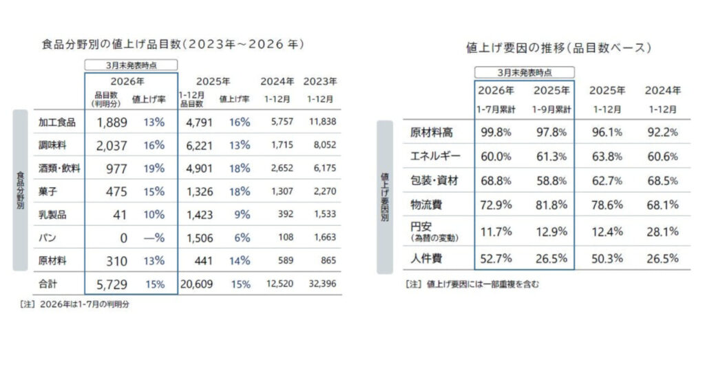 幅広い飲食料品を対象に、2026年後半に値上げラッシュが再燃する可能性があると警鐘を鳴らしています。