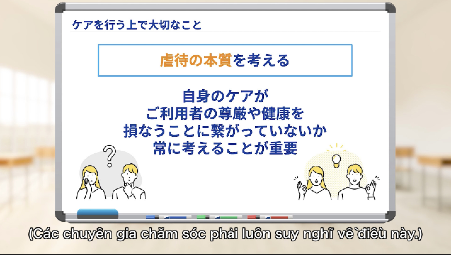 5ヶ国語の字幕機能つきで、外国籍の介護職員も学習しやすく